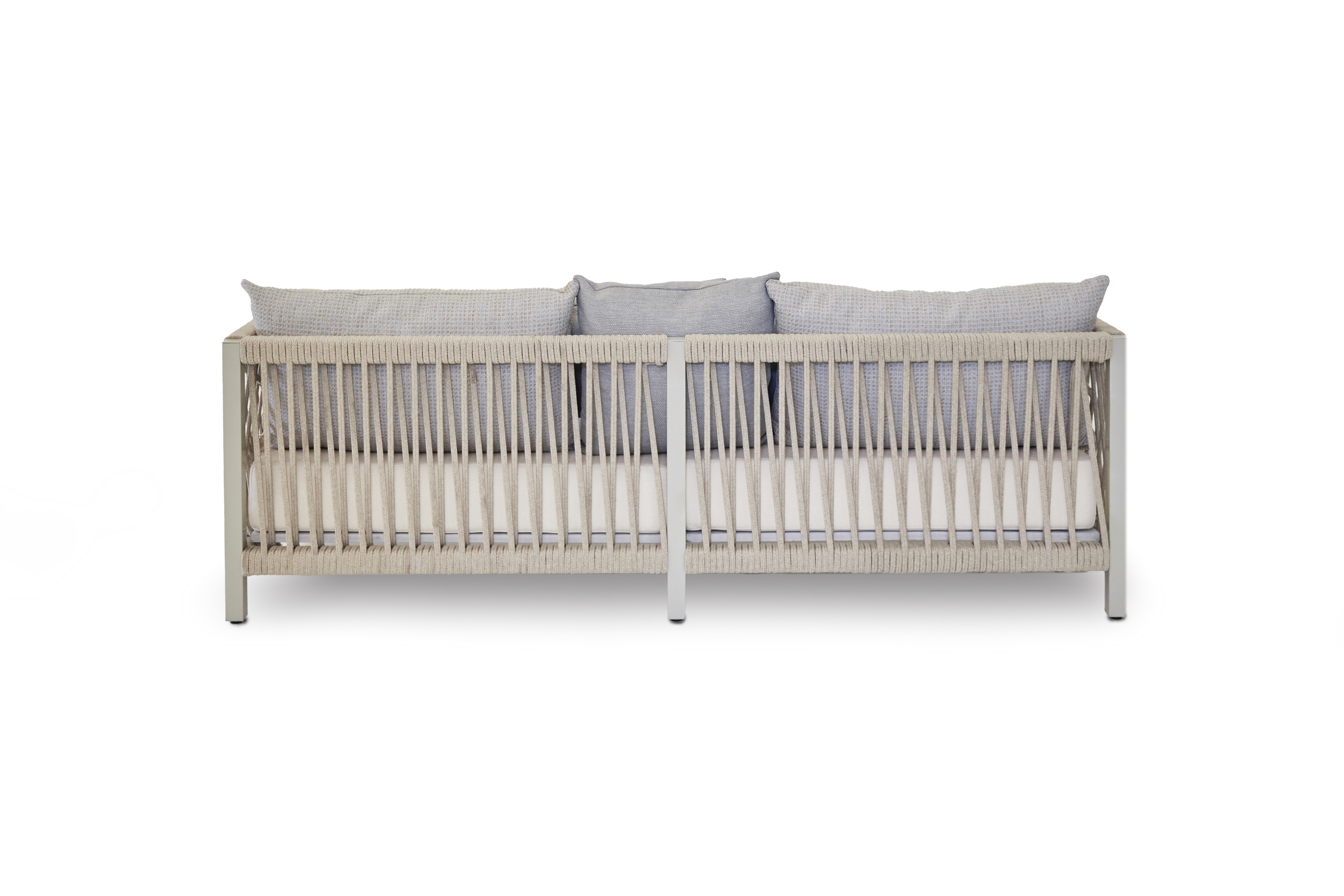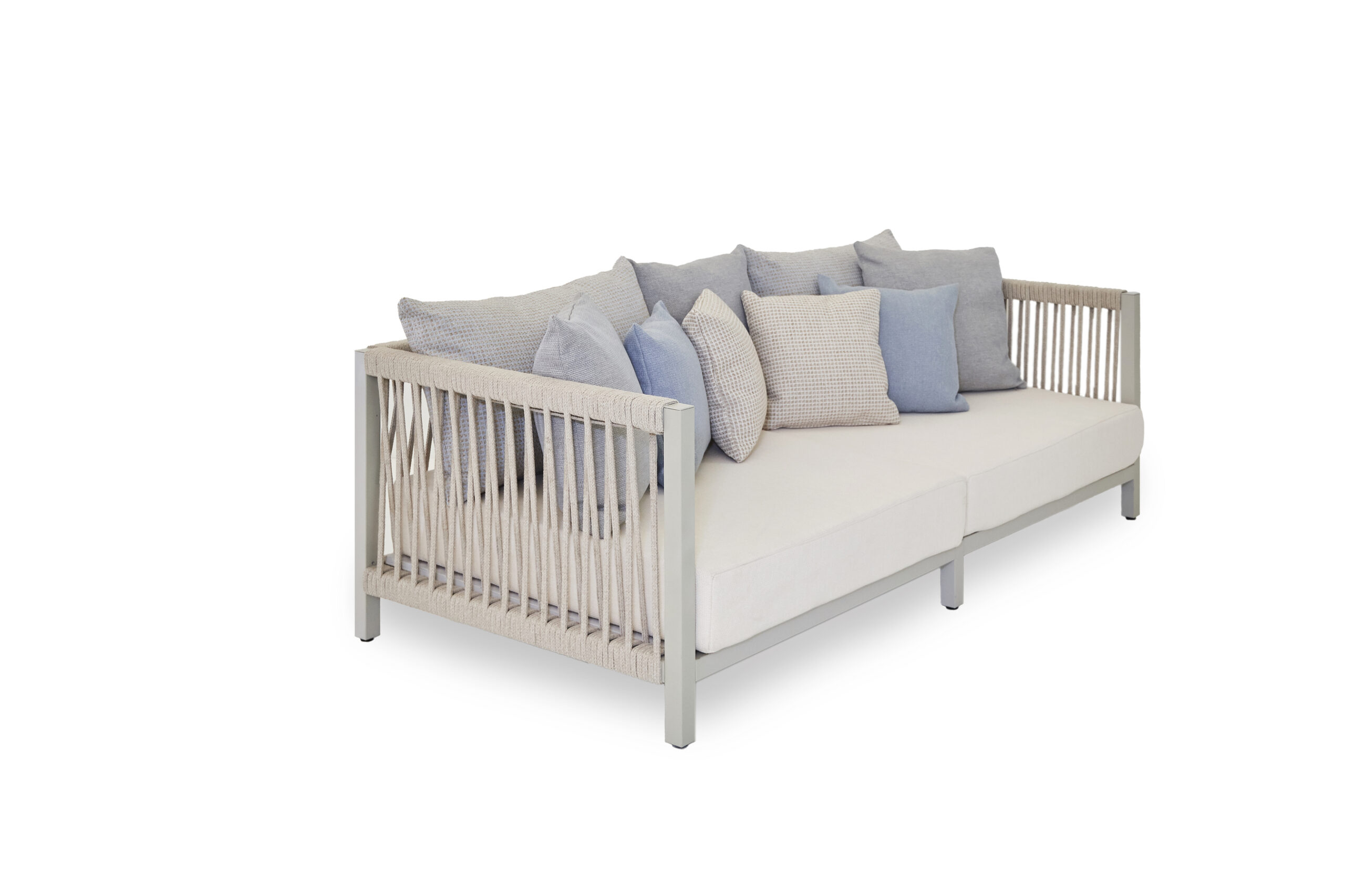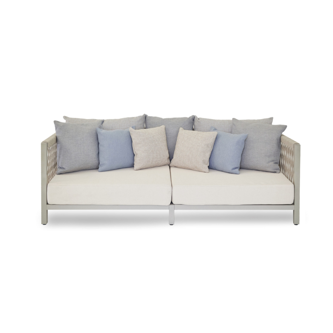 Raffinato arredamento senza rinunciare al comfort e al design dell’indoor. La sua struttura portante è realizzata in alluminio verniciato. Sia il rivestimento che I ‘imbottitura sono idrofughi, antimuffa e antimacchia.