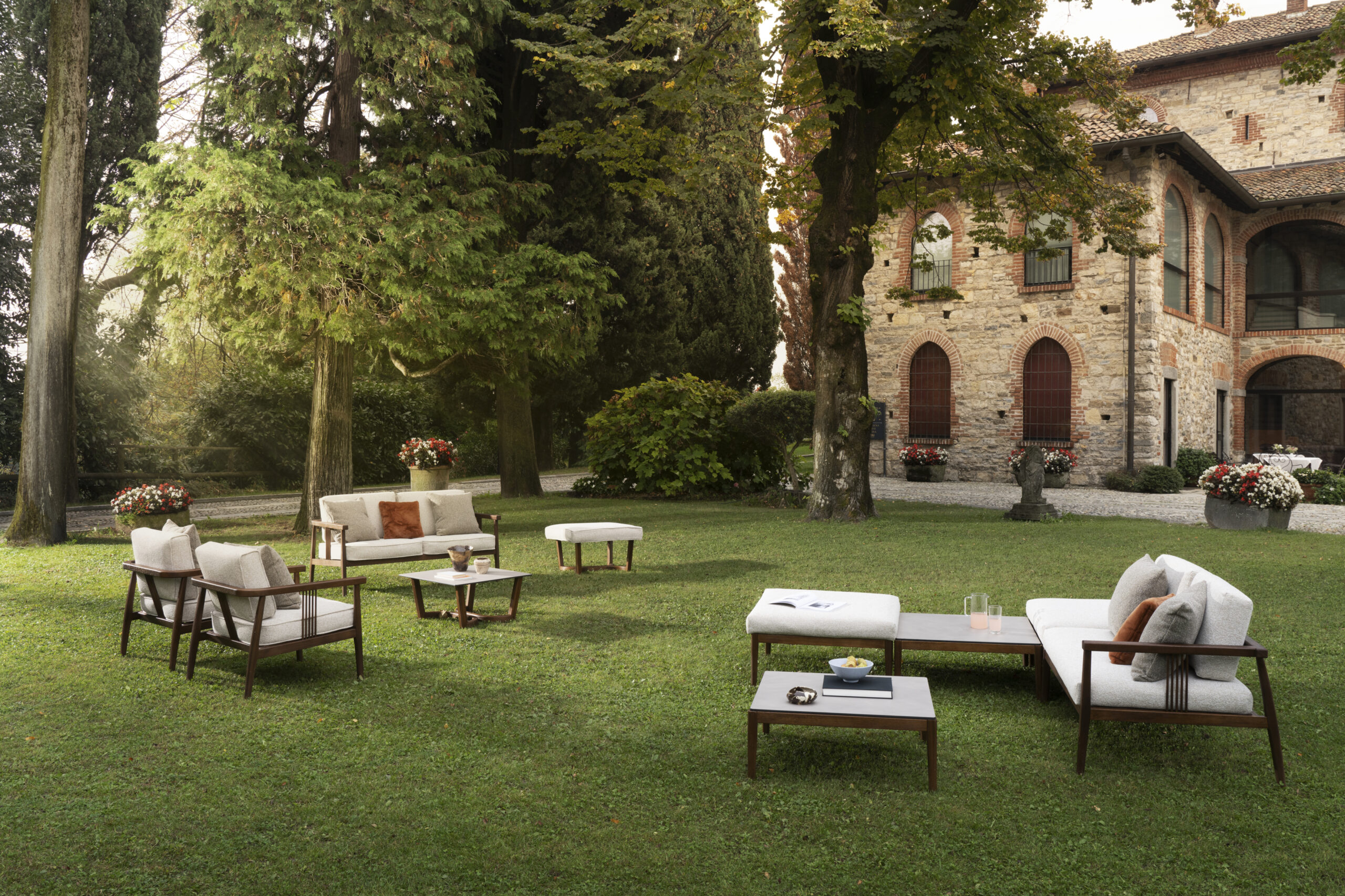 Il vibrante e morbido Divano Ischia ricrea sedute simmetriche e dal profilo avvolgente. Cuscinature dalle neutre intensità si abbinano all’elegante profilo in legno Iroko dalle leggere sfumature calde o dalle forti cromie marroni. Comfort elegante e contemporaneo, ideale per ogni esigenza di relax negli spazi outdoor più esclusivi.
