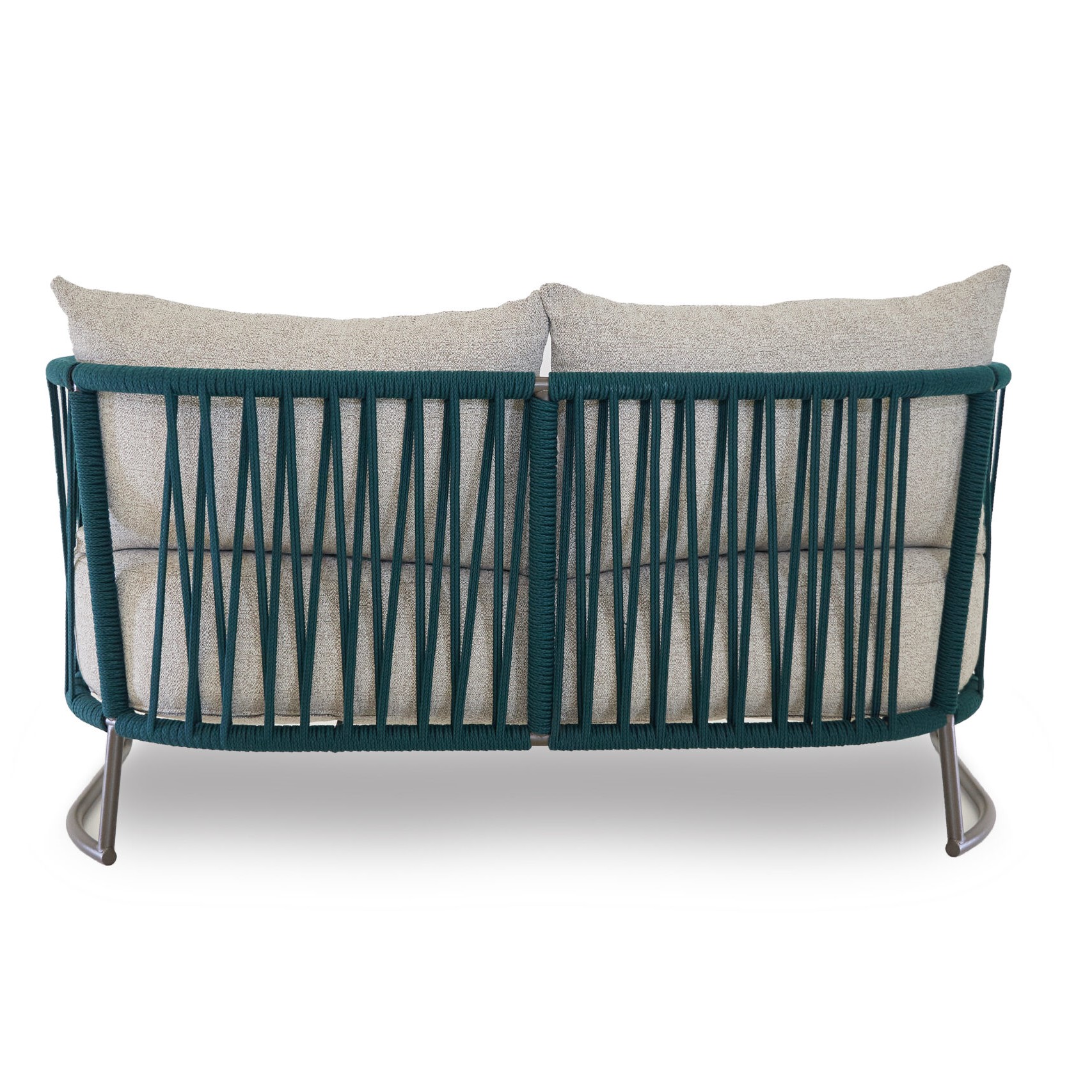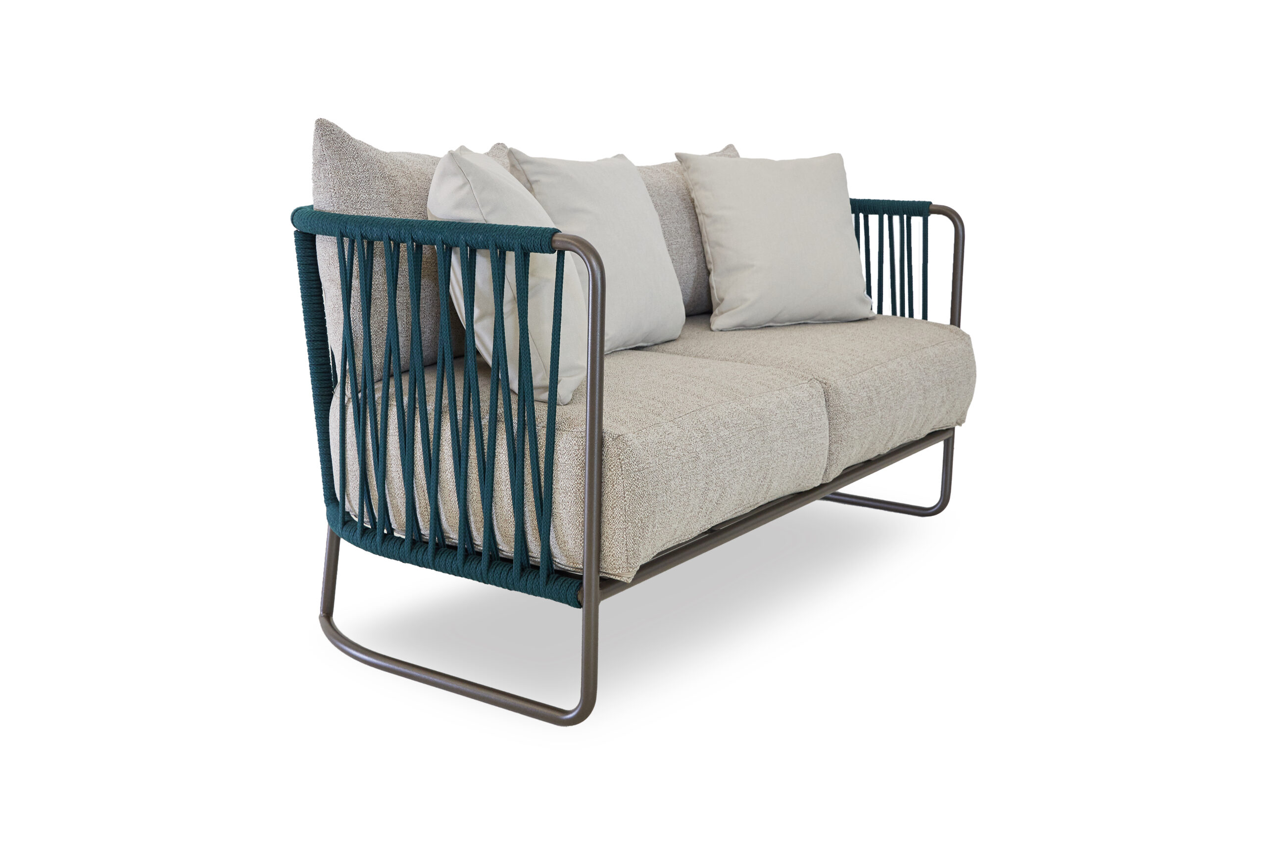 Il Levante Sofa ricrea due sedute simmetriche e dal profilo avvolgente. Le strutture portanti in metallo dello schienale sono decorate da particolari intrecci di corda. La nascente alba si completa di ampi cuscini dalla forma classica e imbottita. Ecco il comfort elegante e ideale per ogni esigenza di relax negli spazi outdoor più esclusivi.