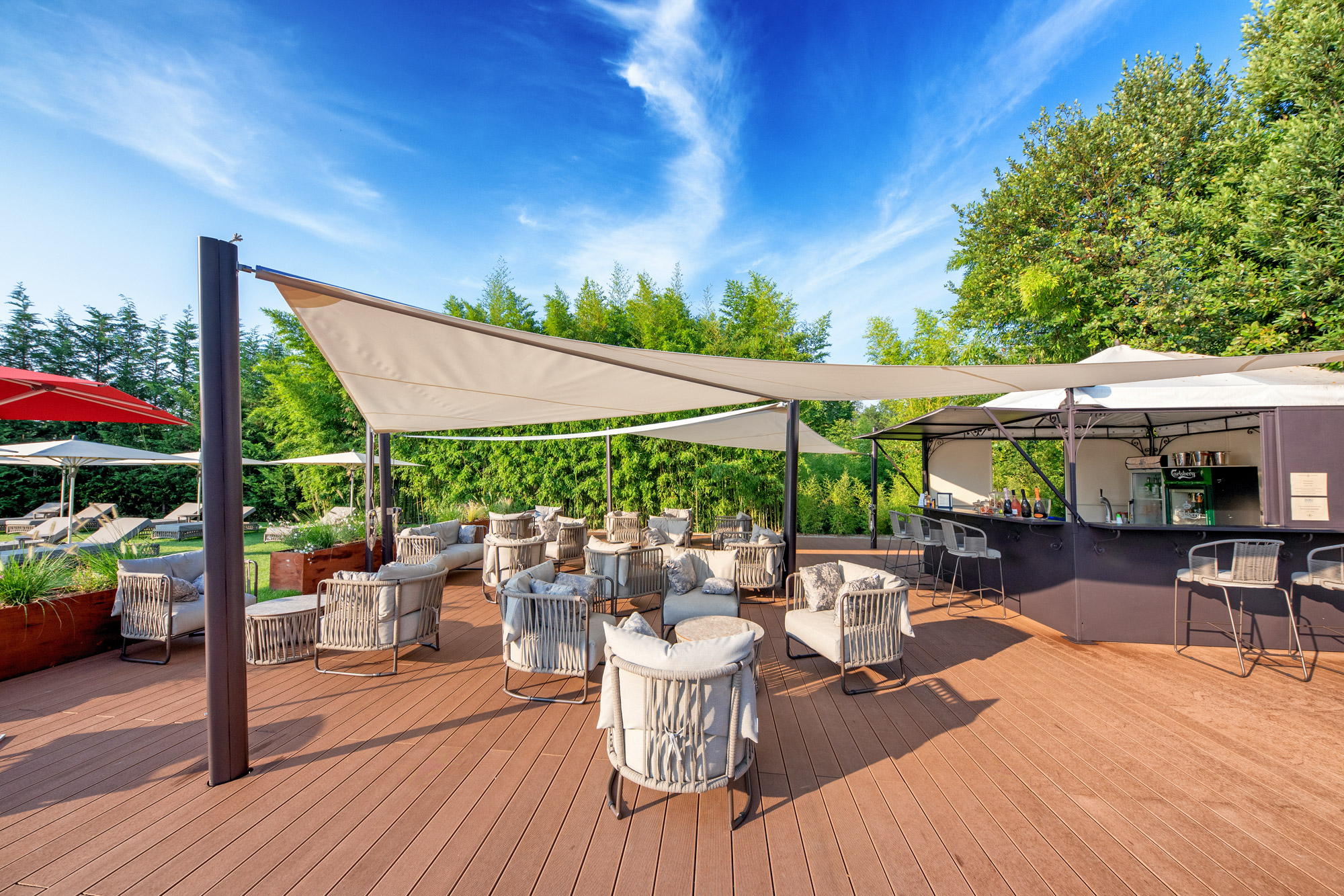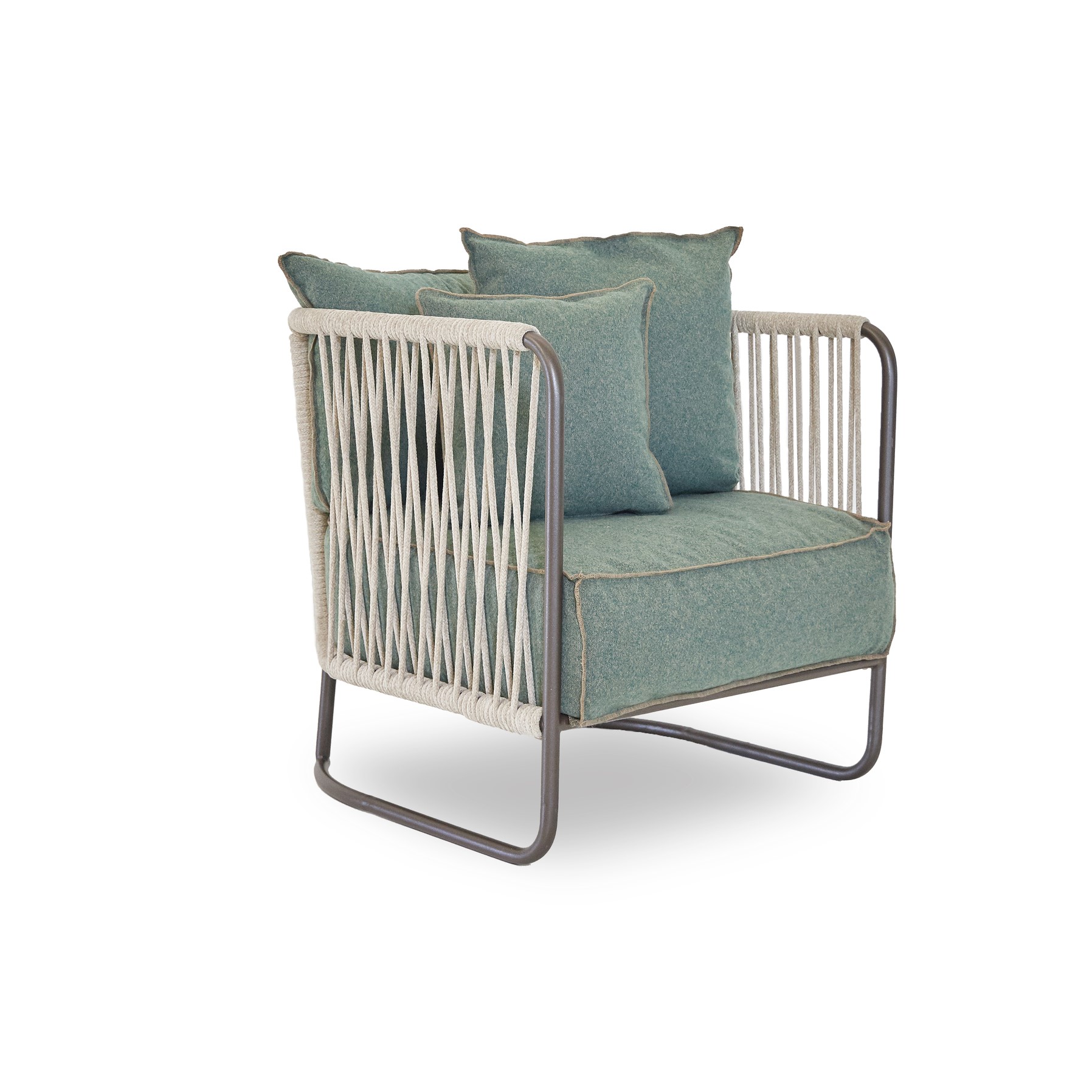 The Levante collection also includes armchairs decorated with a complex system of ropes: exciting weaves along the entire backrest. The soft cushions in warm tones are well suited to different functions: exclusive and worldly, sober and contemporary. The metal, the basis of the entire structure of the legs, raises the seat from the ground like a sun ready to rise.