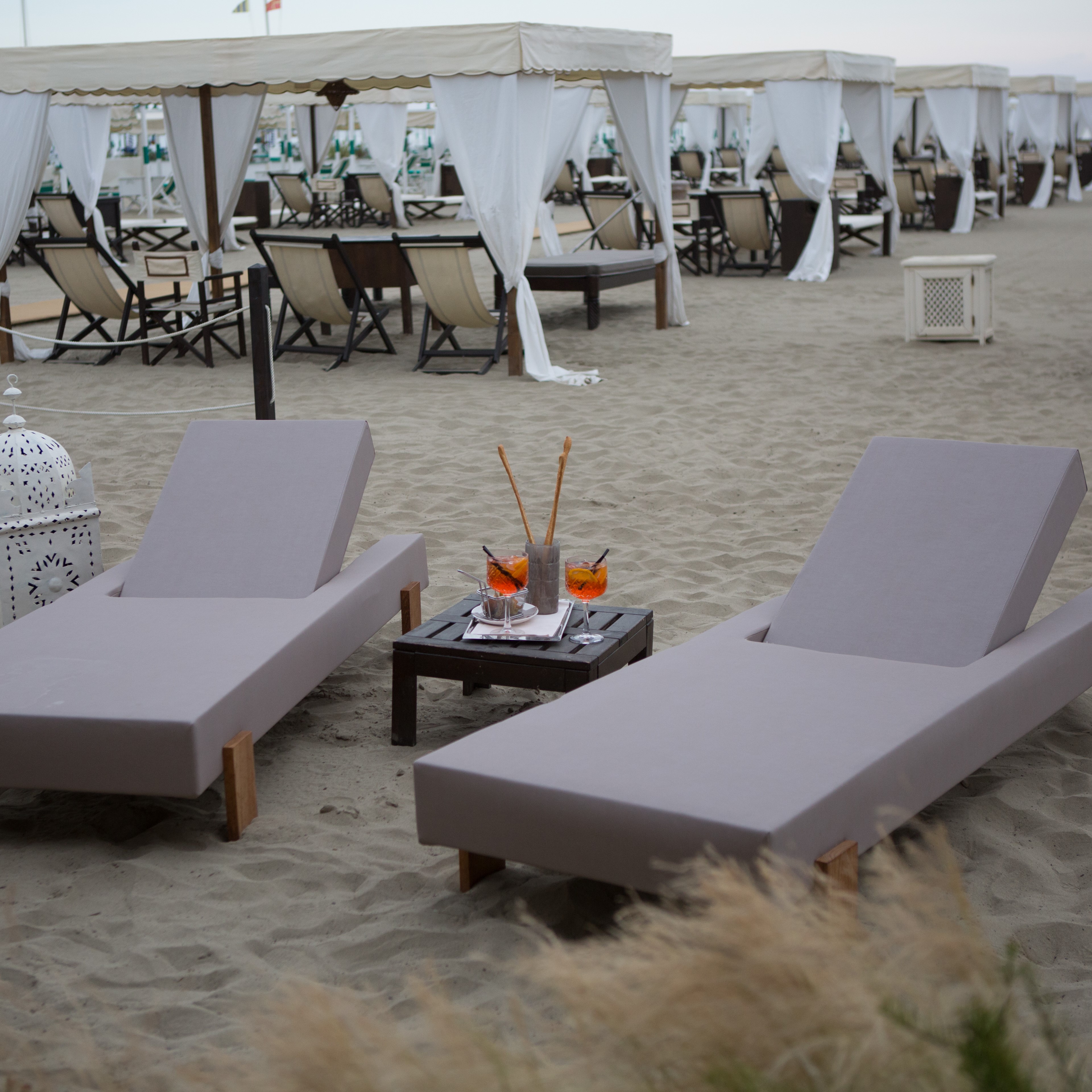 Coniuga le funzioni di un lettino prendisole a quelle di una chaise longue imbottita in Tecnorev a densità differenziate, con schienale reclinabile dal Design volutamente lineare ed elegante, che avvolge la solida e leggera struttura in alluminio.