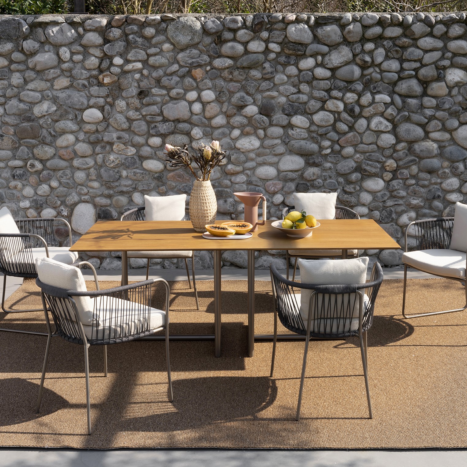 Finitura piani: Marmo, cristallo, HPL, legno Teak o Iroko, cemento